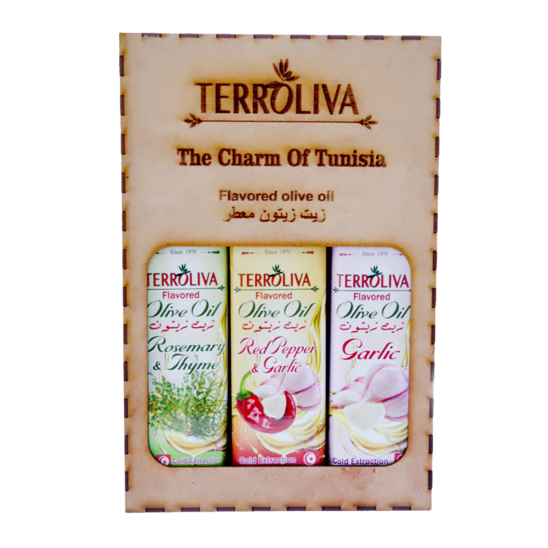 Composé d’un bouteille d’huile d’olive extra vierge en verre…